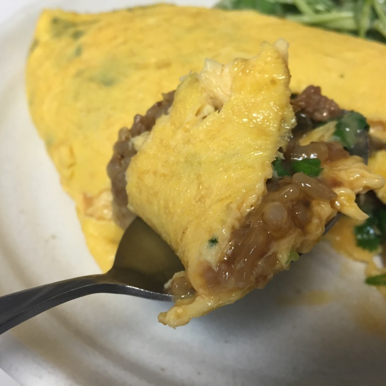 ガパオライスとパクチーのオムライス